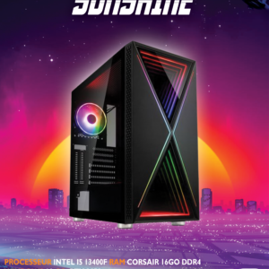 Tour Gaming Cyber Starry – Processeur Ryzen 5 8500G – Ram 16Go DDR5 ( 2×8 Lexar 5600Mhz ) – SSD Nvme 1To Crucial – Msi Nvidia Rtx 3050 Ventus 2X 8Go – Boitier Atx Enermax Starry – Alimentation Bequiet 700W
